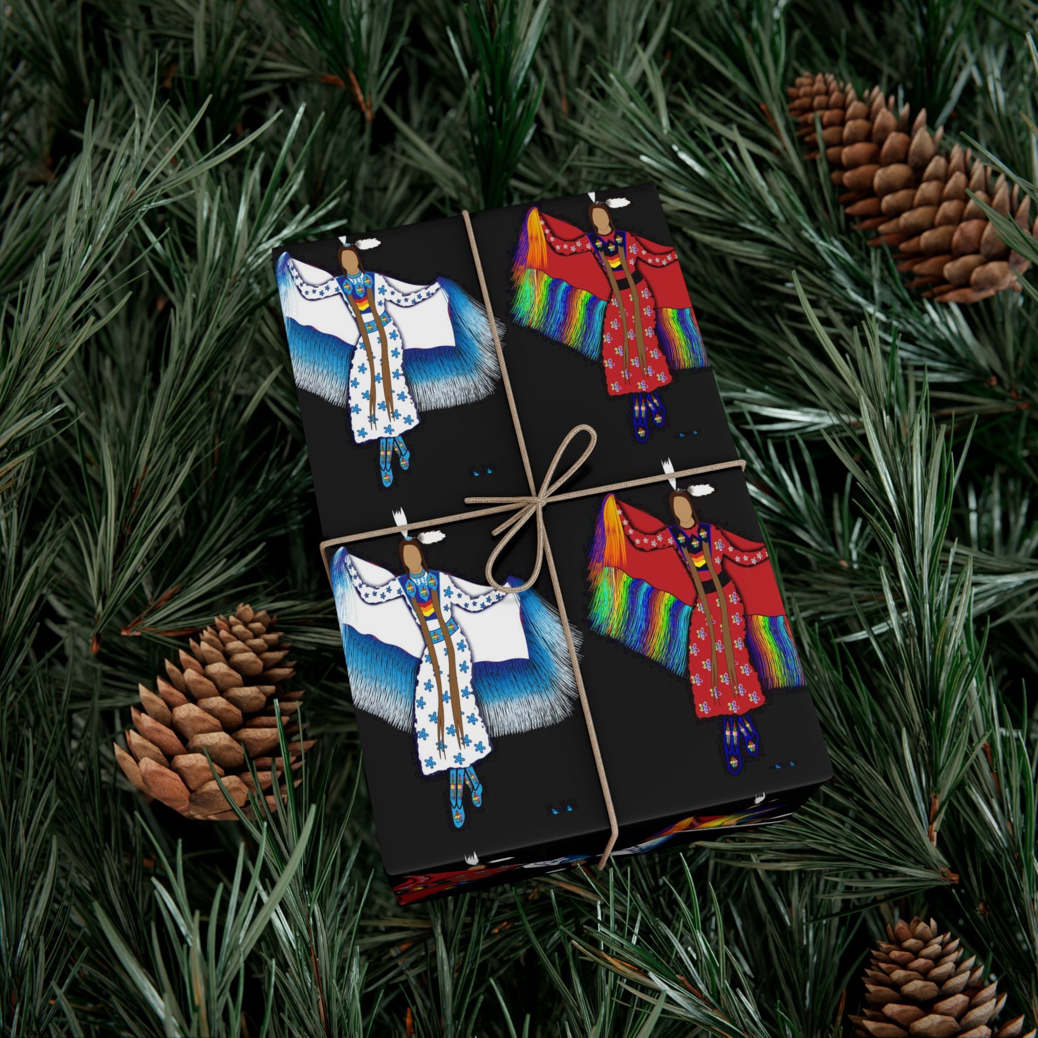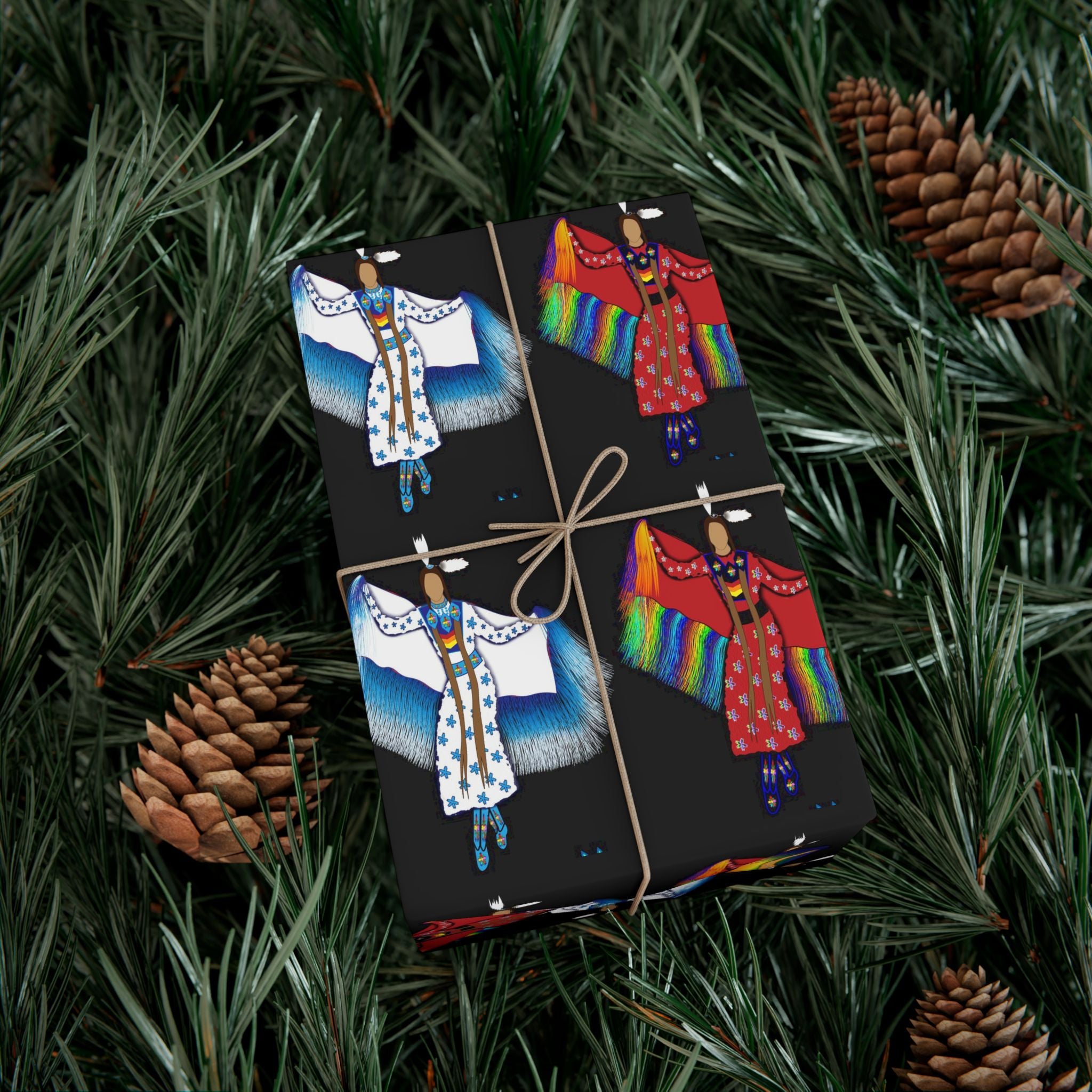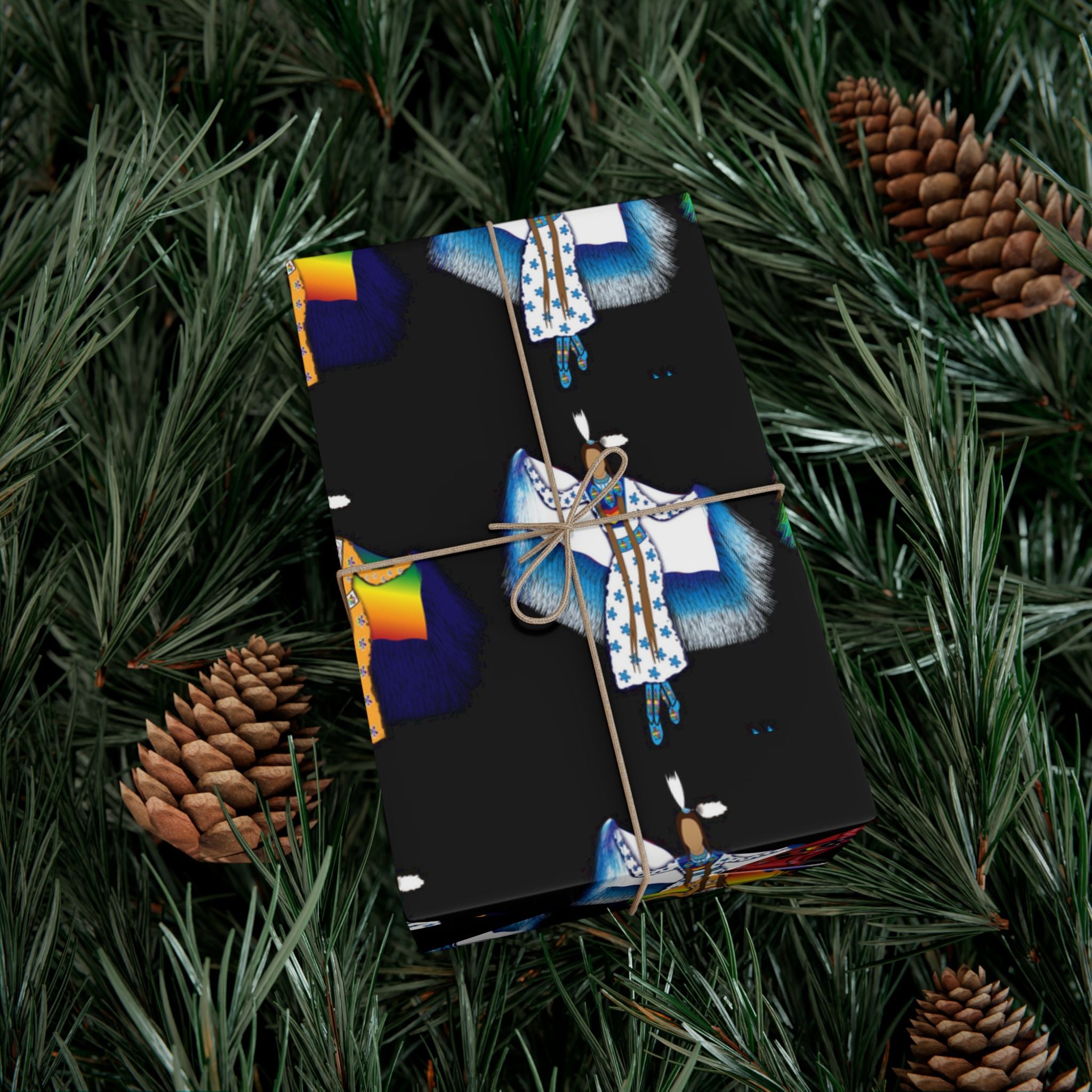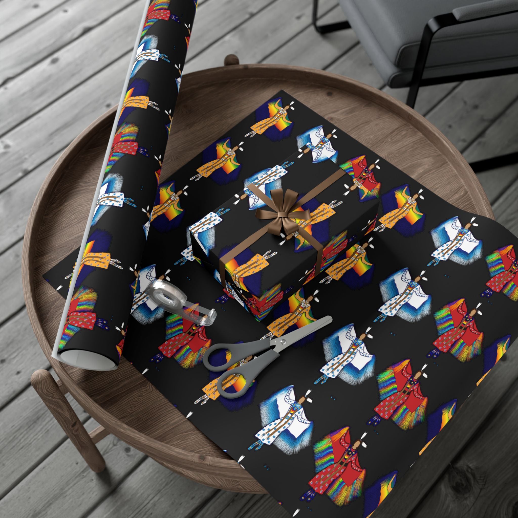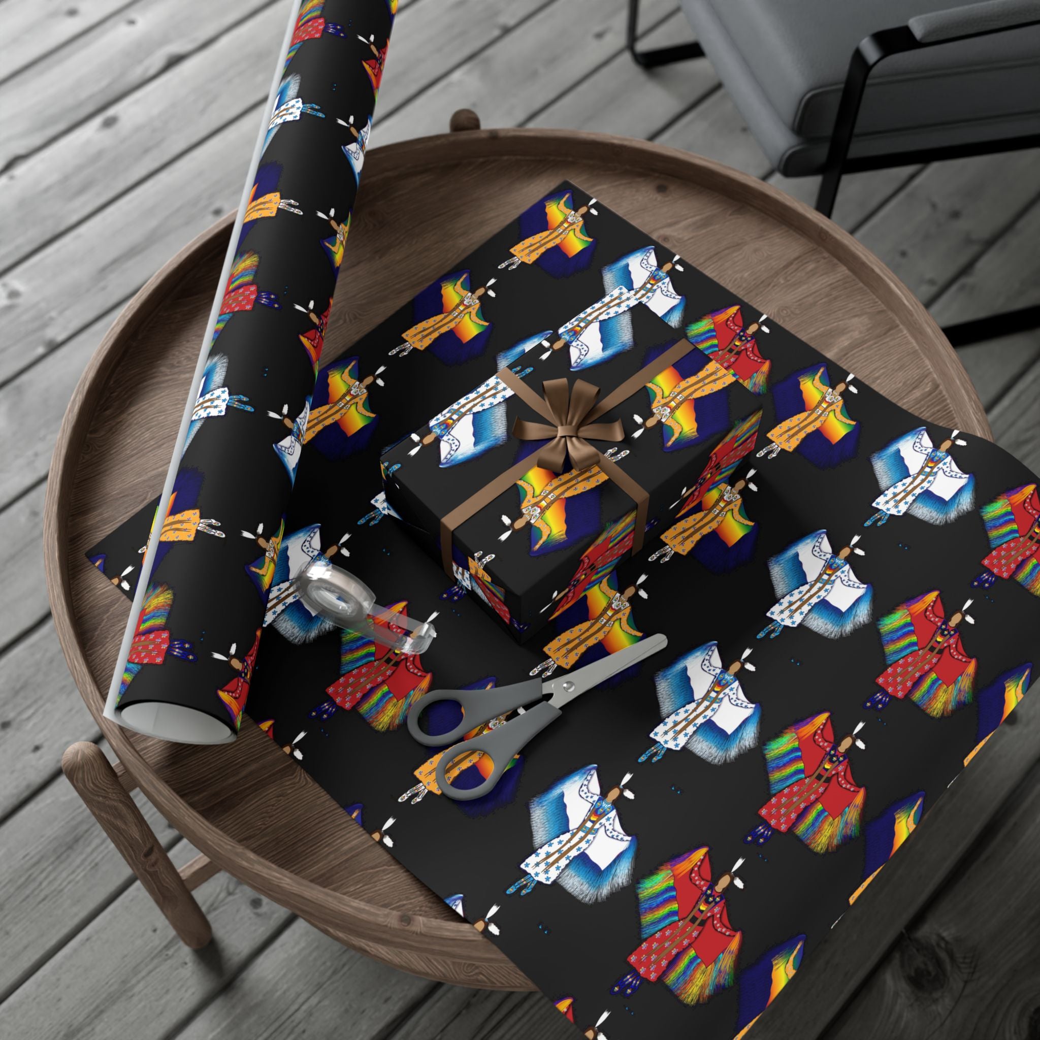 Fancy Dancers drawn and designed by Angela Gillette, owner of White Corn Wear. Make any gift bring an even wider smile to the receiver with this personalized gift wrap paper. Perfect display of Native American Powwow Culture.