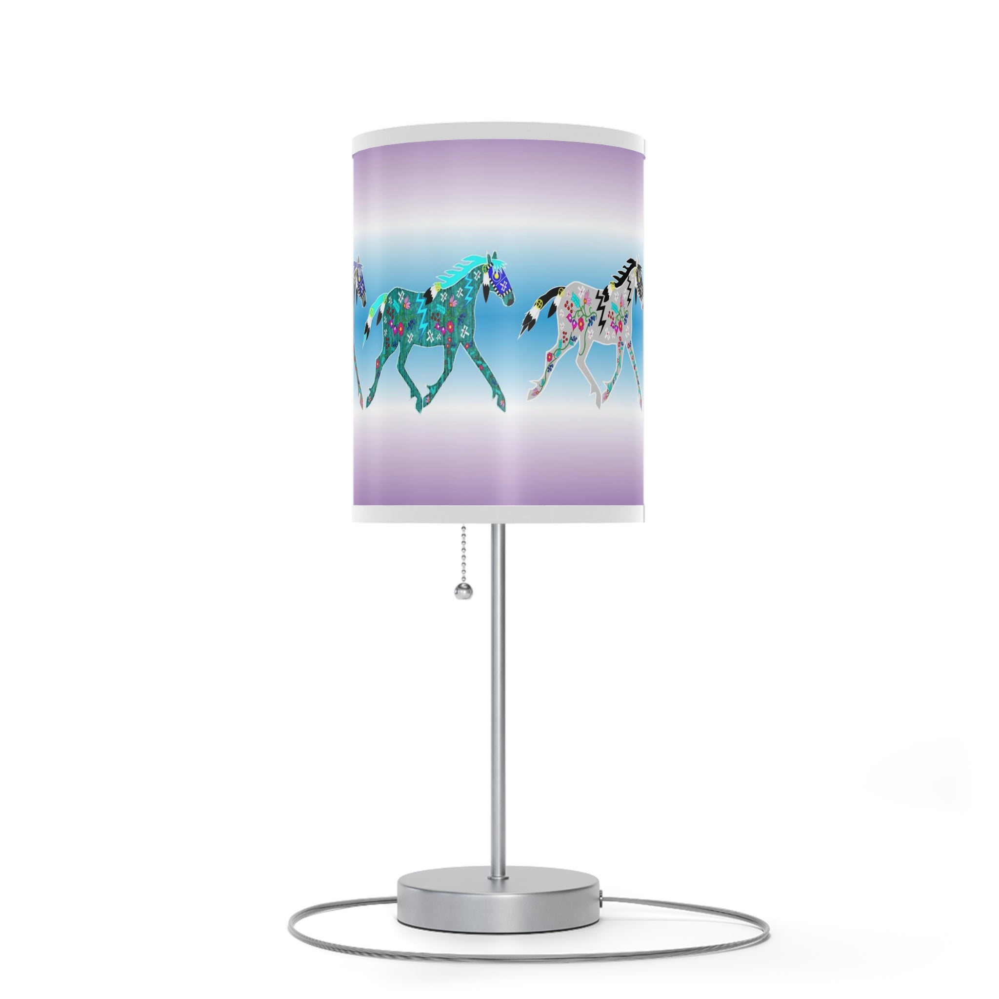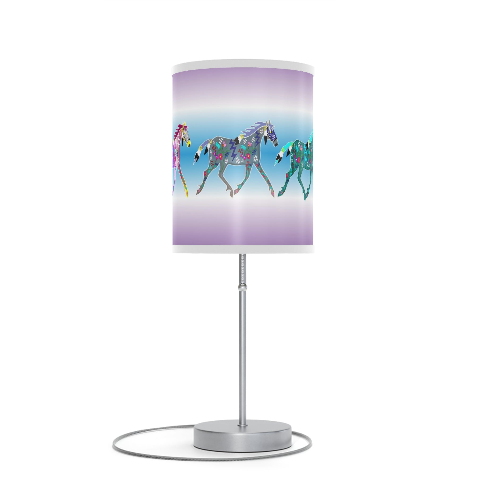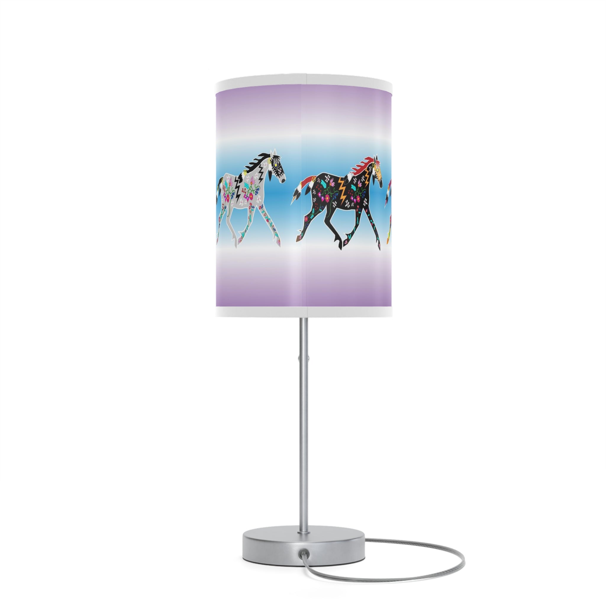 This unique table lamp stand designed by Angie Gillette features a steel base that comes with a classy finish in silver or white. The shade of the lamp is available in 10 different trim colors and can accommodate all your designs in high-resolution printing.