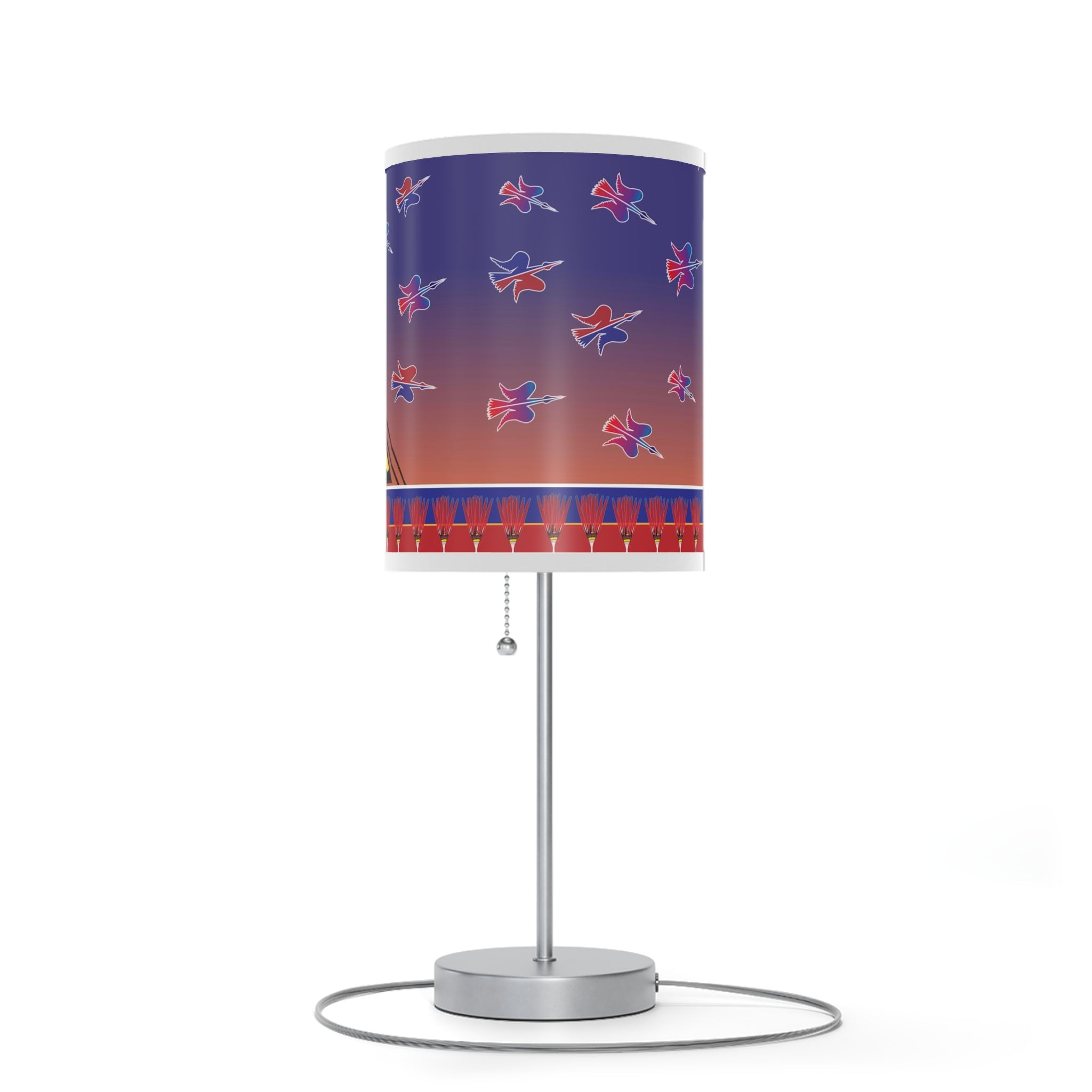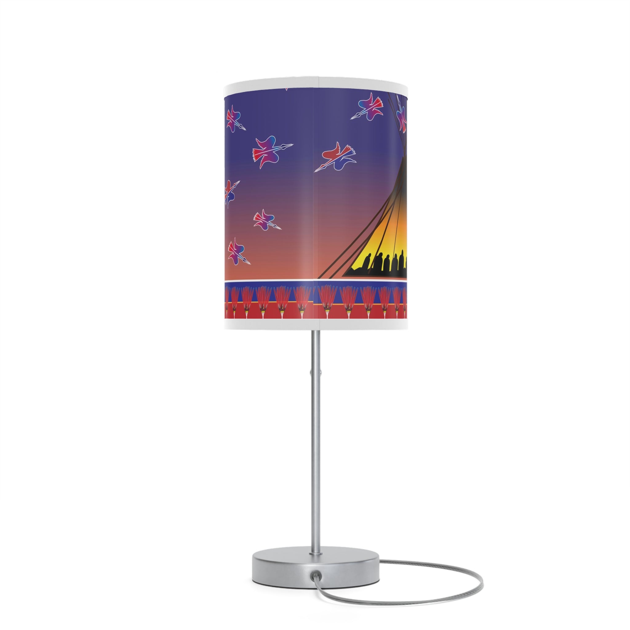 This unique table lamp stand designed by Angie Gillette features a steel base that comes with a classy finish in silver or white. The shade of the lamp is available in 10 different trim colors and can accommodate all your designs in high-resolution printing.