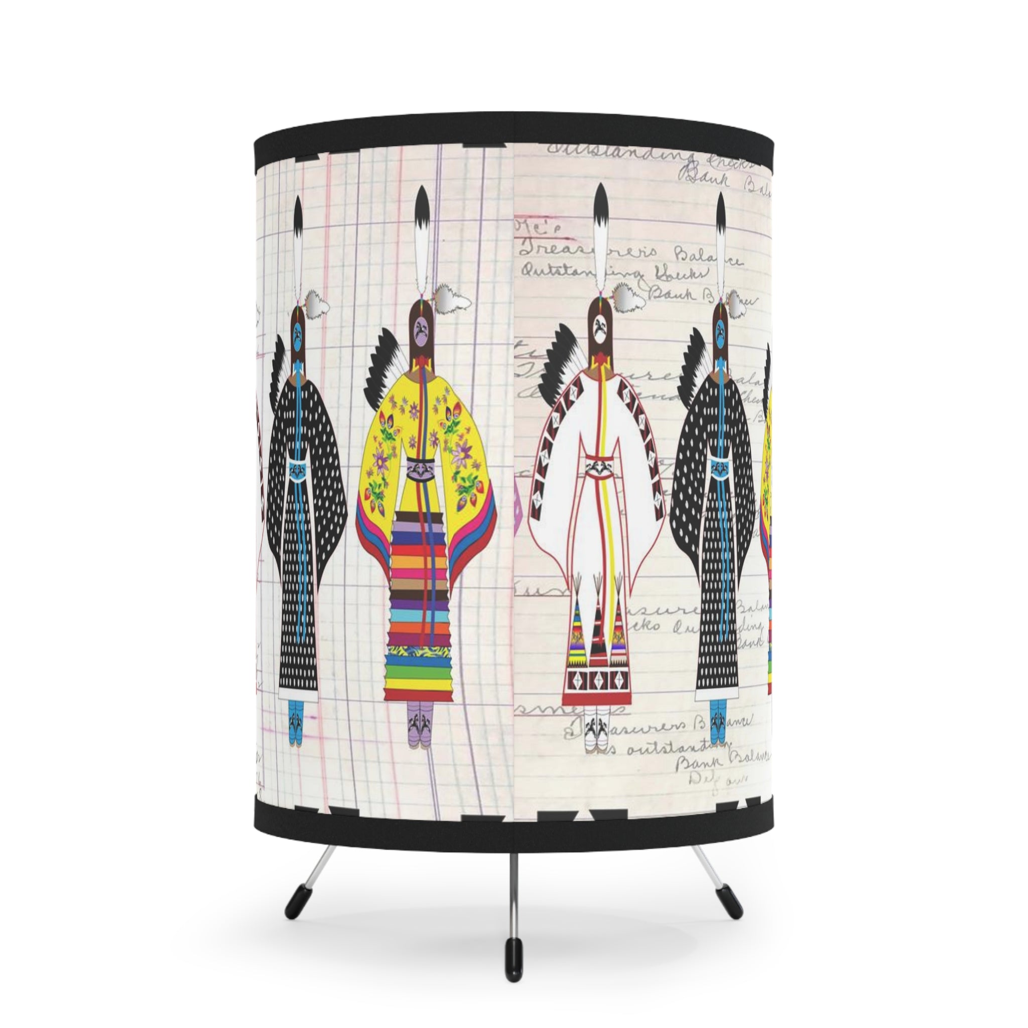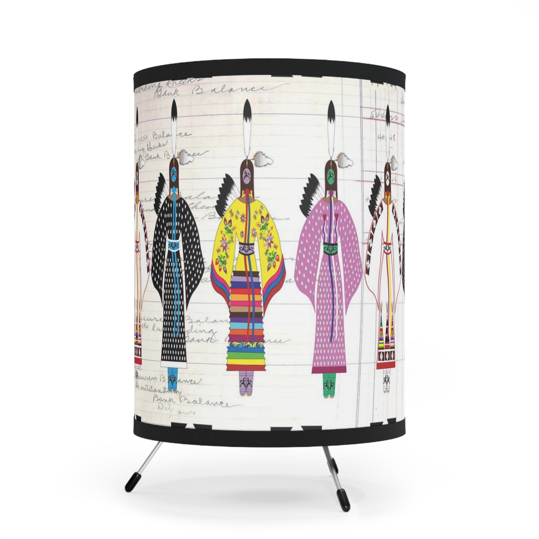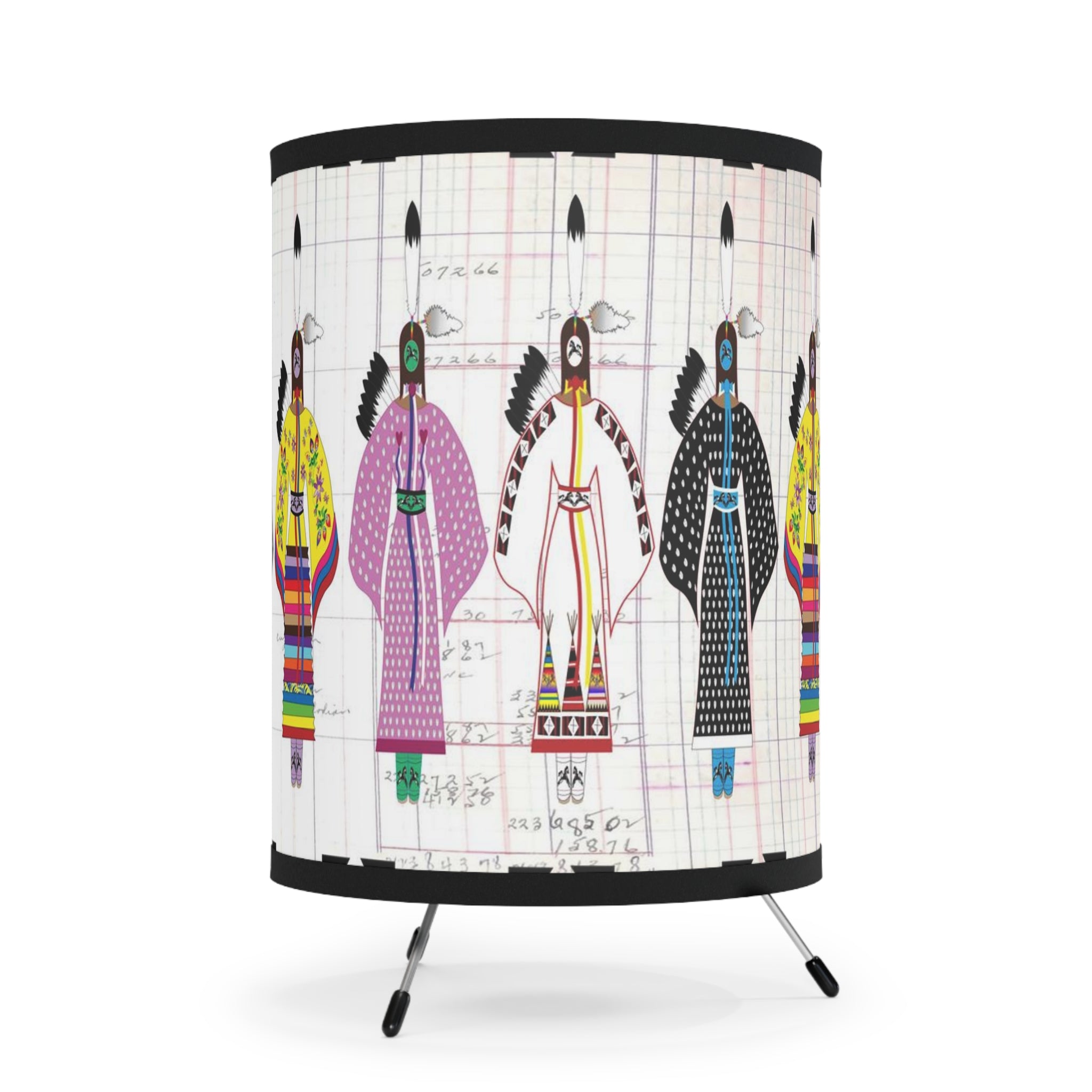 Designed by Angel Gillette. When function met aesthetics, this tripod lamp with custom-printed lamp shades was born. Featuring a galvanized steel tripod base, this lamp delivers both high-end durability and a unique decorative touch. The custom printed lamp shades can accommodate high-resolution custom prints and add your personality to your surroundings.