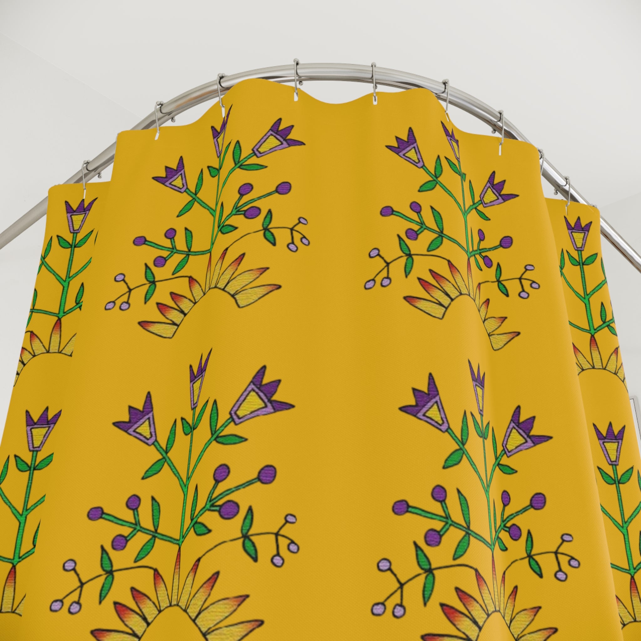 This Shower Curtains features a unique Midwest floral design drawn by Butch Thunderhawk. It adds a touch of nature and artistry to your bathroom decor, giving off a homey and cozy vibe. Perfect for adults who appreciate unique and artistic pieces, this shower curtain is ideal for adding a pop of color and style to your bathroom. Great for springtime, Mother's Day, or any occasion when you want to freshen up your space.
